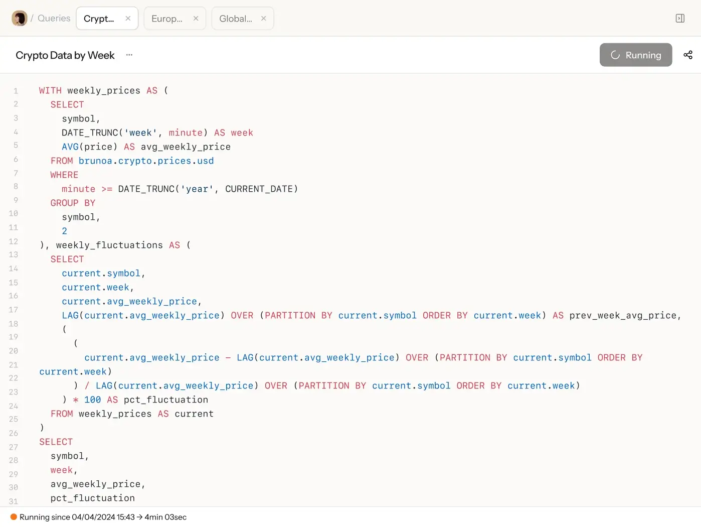 Edit SQL logic, join new datasets, and publish the results back into chat for others to explore.